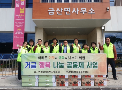 한편, 금산면 지역사회보장협의체는 좀도리 특화사업을 지속적으로 추진하며, 어르신부터 어린아이까지 금산면민을 따뜻하게 보살피는 다양한 지원 사업을 펼치고 있다. 협의체는 넉넉한 엄마의 품처럼 지역에 온기를 불어넣고, 누구나 살고 싶고 머물고 싶은 정이 넘치는 금산면을 만들기 위해 최선을 다하겠다고 밝혔다.