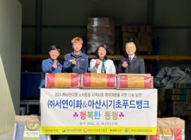 이번 행사는 '㈜서연이화와 함께하는 행복한 동행'이라는 이름으로 지난 30일, 아산시 염치읍에 있는 아산시기초푸드뱅크에서 열렸다.