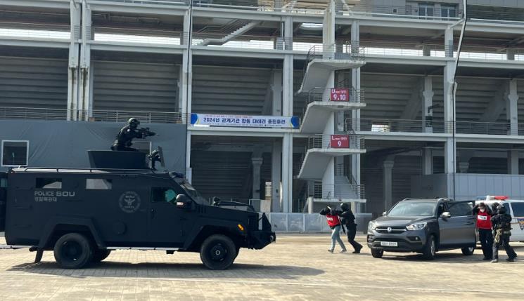 이날 훈련은 국내외 다수의 관람객들이 방문하는 영암 국제자동차경주장과 같은 다중이용시설에서 폭발물 및 인질테러, 드론에 의한 화생방 공격 등 발생가능한 복합적인 상황을 가정하여 훈련을 진행했다.
