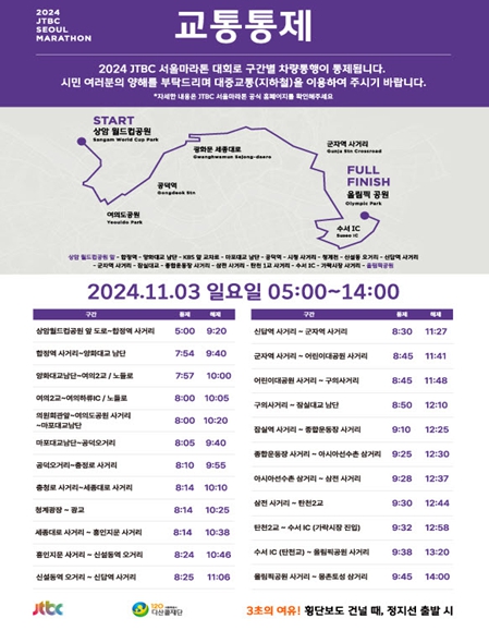 또한 휴일 교통량을 고려해 가변차로를 운영하거나 대회 상황에 맞춰 탄력적으로 통제할 예정이며 카카오내비와 T맵, 네이버 내비게이션 서비스를 통해 우회로를 안내해 운전자들의 불편을 최소화할 계획이다.