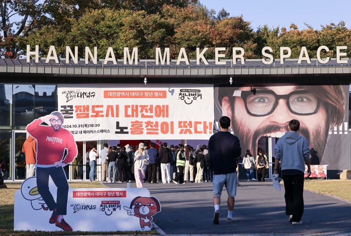 | 대전 대덕구는 노홍철 초청 ‘2024 청년특강’이 성황리에 마무리 됐다고 밝혔다. 학생들이 강연을 듣기 위해 한남대학교 메이커스페이스로 이동하고 있다. |