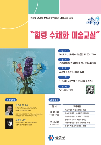 모집 대상은 고경력 은퇴과학기술인으로, 신청은 11월 4일부터 유성다과상 홈페이지에서 무료로 선착순 30명을 모집하며, 자세한 내용은 유성구 교육과학과로 문의하면 된다.