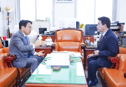| 강기정 광주광역시장은 지난 10월29일 국회에서 박정 예산결산특별위원장을 만나 광주시 주요 현안 사업에 대한 국비 반영을 건의하고 있다. |