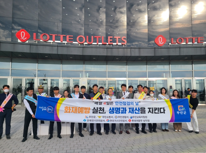 이날 행사는 무안군 주최로 무안소방서, 무안경찰서, 전기안전공사, 가스안전공사, 자율방재단, 녹색어머니회 등 관계기관과 단체들이 참여하여 점포주와 방문객을 대상으로 겨울철 화재 예방 안전수칙 홍보물을 배포하고 롯데아울렛, 롯데마트를 대상으로 시설안전에 대한 민관 합동안전점검을 실시했다.