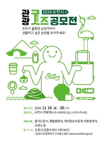 시 관계자는 “이번 공모전을 통해 선정된 굿즈는 순천 관광 홍보를 위해 활용할 예정”이며, “관광객들이 간직하고 선물할 만한 소품 위주의 실용적이고 독창적인 작품이 응모되기를 기대한다”고 말했다.