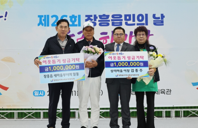 이날 행사에서 사회봉사상을 수상한 상리마을 김종주 이장이 1백만원, 장흥읍새마을부녀회(회장 이애영)에서 1백만원을 지정기탁했다.