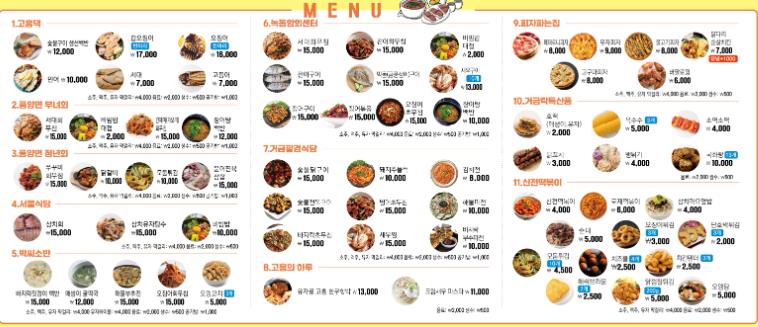 이번 축제에서는 ▲장어탕 백반(10,000원) ▲숯불 생선구이 백반(12,000원) ▲서대회무침, 간자미 회무침, 전어회무침, 바지락 초무침(각 15,000원) ▲전어구이, 장어구이, 막돔(금풍생이) 구이(각 15,000원) ▲바지락 짓갱이 백반, 삼치회, 삼치유자탕수(각 15,000원) 등 고흥의 우수한 식재료를 사용하면서도 시중보다 저렴한 가격에 만나볼 수 있다.