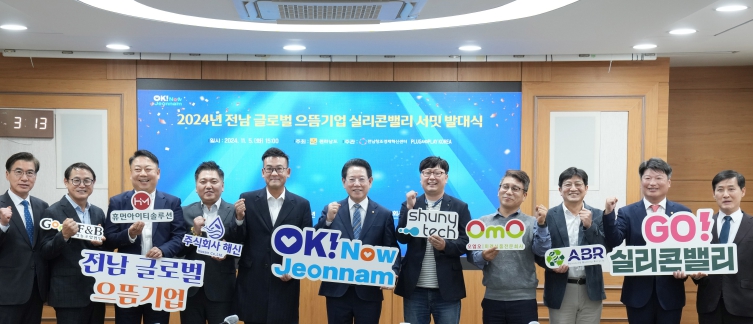 이날 발대식에는 김영록 전남도지사, 전남 글로벌 으뜸기업 6개사 대표와 세계적 창업기업 육성기관인 플러그앤플레이(Plug and Play)의 조용준 대표(한국 지사)가 참석했다. 전남 글로벌 으뜸기업은 ㈜휴먼아이티솔루션(대표 최봉두·디지털헬스케어 S/W개발), ㈜에이비알(대표 김유탁·폐배터리활용 이차전지 재제조) ㈜해신(대표 김운봉·해삼가공식품 제조), 좋은영농조합법인(대표 이기선·나주배 착즙주스 제조), 오엠오(대표 허누림·식용곤충식품 제조), ㈜슈니테크(대표 정승호·친환경 김종자 배양필름 제작)다.