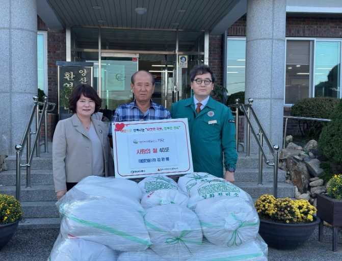 김완배 대표는 양산면 지역사회보장협의체 위원장직을 맡고 있어 평소 면민복지에도 관심과 힘을 쏟고 있으며, 매년 첫 수확한 햅쌀을 이웃에 베풀고 있다.