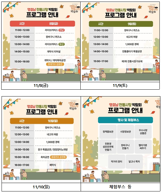 이준승 시 행정부시장은 “이번 박람회가 영호남의 다양한 전통시장의 매력과 가치를 시민들에게 다시금 알리고, 지역 상인들에게는 매출 증대와 경쟁력 강화의 기회가 되기를 바란다”라며, “우리시도 시민들에게 친숙하게 다가가는 전통시장을 만들기 위해 다양한 지원정책을 이어 나가겠다”라고 전했다.