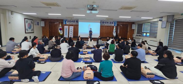 목포시청 회의실에서 실시한 이날 교육은 한국병원 응급의학교육팀 전문강사를 초빙해 ▲심폐소생술의 중요성 ▲자동심장충격기의 올바른 사용법을 주제로 체계적인 강의 및 실습이 이루어졌다.