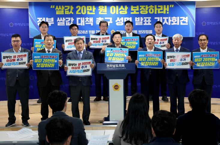 이에 전라남도의회는 11월 7일, 정부의 수확기 쌀값 대책들이 쌀값 상승에 전혀 영향을 주지 못한 맹탕·재탕·물타기 대책에 불과하다고 강력히 비판하면서, 실효적인 대책 마련을 촉구하는 성명서를 발표했다.