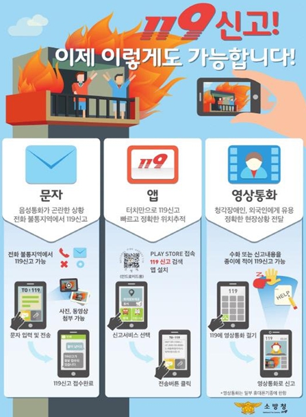 ‘119 다매체 신고 서비스’는 기존의 음성 통화 방식 외에도 문자, 영상 통화, 애플리케이션(앱)을 통해 신고할 수 있어 청각장애인, 외국인, 다문화 가정, 어르신 등 음성 신고가 어려운 사람들도 신속하고 정확하게 긴급 상황을 전달할 수 있도록 돕는다.