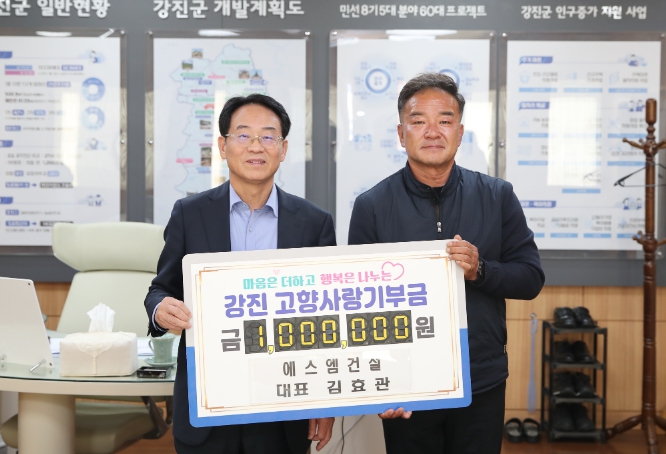 김효관 대표는 “고향사랑기부제를 통해 강진 발전에 기여할 수 있어 뜻깊다”며 “좋은 기금사업으로 주민이 행복하고, 찾고 싶은 강진을 만들어 달라”고 밝혔다.