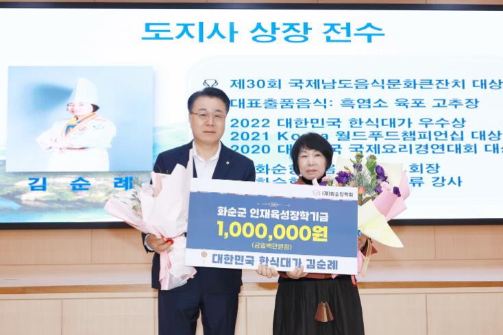 | 김순례 한식 대가, 화순장학회에 장학금 100만 원 기탁 |