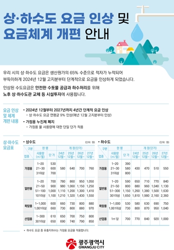 | 광주광역시, 상·하수도 요금 단계적 인상 |