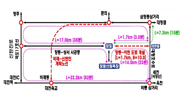 현재 장동지역으로 진출입이 가능한 도로는 회덕역 인근 17번 국도와 연결된 장동로 뿐이다.