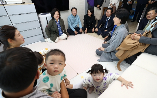 | 국회 저출생·축소사회 대응 포럼 소속 국회의원들이 지난 7일 전국 최고 수준의 육아수당정책으로 성과를 내고있는 강진군의 한 가정을 찾아 얘기를 나누고 있다. |
