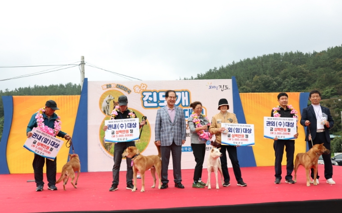 2년 이상 성견에게 수여하는 진도군수상(대상)에는 관내 ▲김응길 출진견 ‘초희’(암), ▲강성홍 출진견 ‘수범’(수), 관외 ▲서울 성동구 양완석 출진견 ‘다운’(암), ▲충북 청주 권대식 출진견 ‘강호’(수)가 대상의 영예를 차지하고 각각 300만 원의 상금을 받았다.