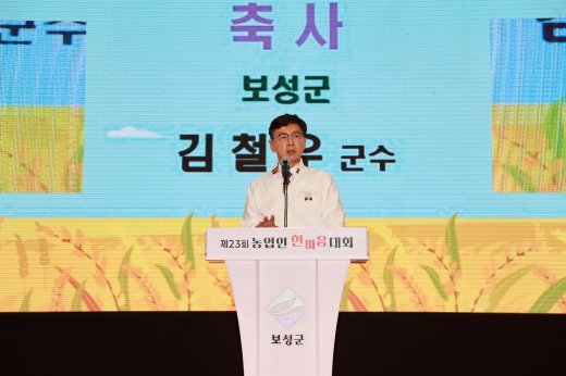| 보성군, 제23회 농업인 한마음대회 성황리 개최_제23회 농업인 한마음대회에서 김철우 보성군수가 축사를 하고 있다 |