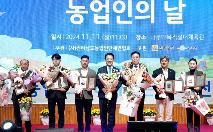 기념식은 한 해 전남 농업과 농촌을 지켜온 농업인의 헌신을 담은 주제영상을 시작으로 전남도 농업인대상 수여, 유공자 표창, 주제공연, 퍼포먼스 순으로 진행됐다.