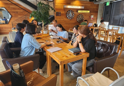 | 광주북구시설관리공단 이사장과 직원들이 짝꿍 독서토론을 즐기고 있다. |