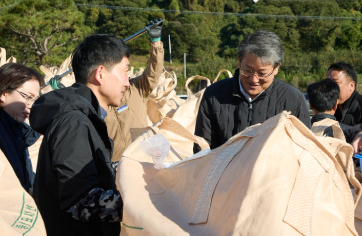 김순호 군수는 지난 12일 광의면 수월리와 마산면 냉천리의 수매 현장을 직접 찾아 농민들과 소통하고 매입 상황을 점검했다.