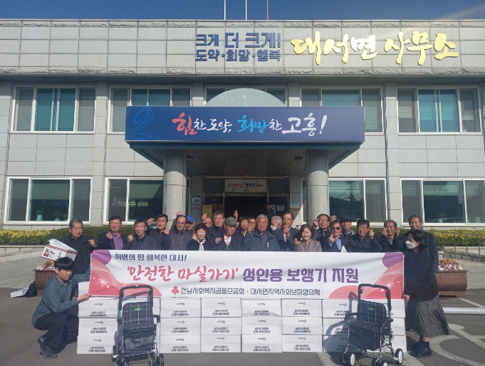 이번 지원은 대서면 지역사회보장협의체가 추진하는 특화사업의 하나로 거동 불편 어르신들의 보행 편의를 도와 사회적 활동을 독려하여 고립감을 해소하고 건강한 노후생활을 도모하기 위함이다.