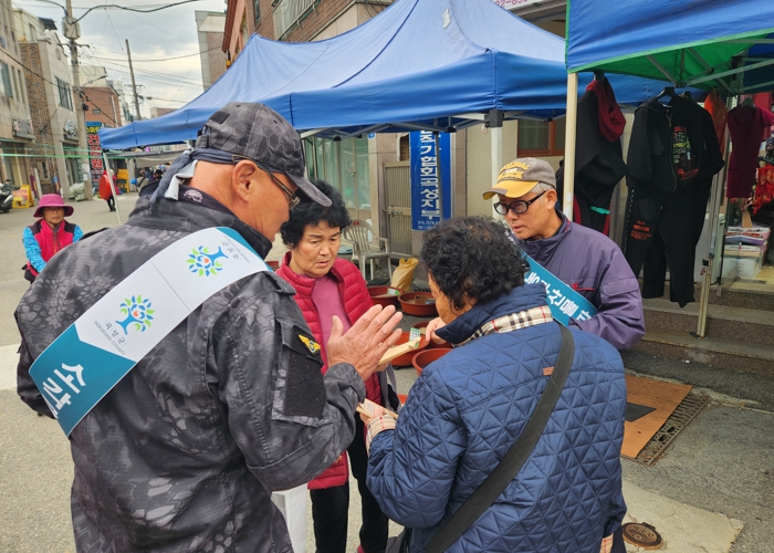 곡성군농업기술센터 관계자들은 전통시장에서 군민들에게 홍보물을 전달하며 산불 예방과 미세먼지 저감을 위해 영농부산물 소각 금지와 파쇄에 동참할 것을 당부하며 캠페인을 진행했다.