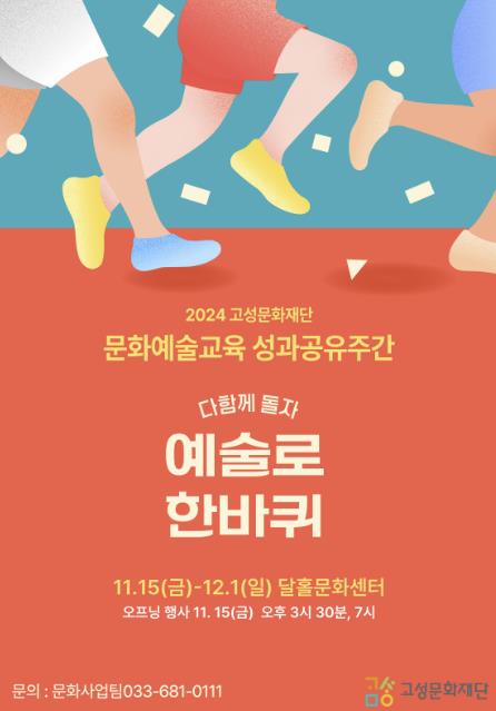 고성문화재단 관계자는 “이번 성과공유주간은 문화예술교육의 중요성을 재확인하고 지역사회의 문화적 성장을 도모할 수 있는 귀중한 시간이 되길 바란다.”라며 “앞으로도 문화예술교육이 지역사회에 긍정적인 영향을 미치고, 지속 가능한 문화예술교육이 이루어지길 기대한다.”라고 전했다.