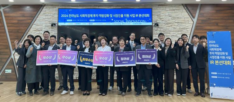 위광환 전남도 일자리투자유치국장은 “지속 가능한 경제와 사회적 가치를 창출하는 사회적기업과 지역자원을 활용한 수익사업을 통해 지역문제 해결에 앞장서고 있는 마을기업이 이번 기회를 통해 투자유치 역량을 강화하고 더 큰 도약을 이루길 기대한다”며 “사회적경제가 지역경제를 선도하는 하나의 축으로 자리잡도록 도민이 관심갖고 지지해달라”고 당부했다.