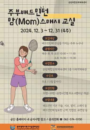 특히 이번 수업은 광주광역시북구배드민턴협회와 협업하여 엘리트 선수 출신 강사가 수업을 담당할 예정이며 강습료는 무료로 진행된다.