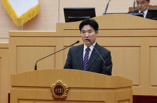 | 김대중 전남교육감이 전라남도의회 제386회 제2차 정례회에서 2025년 전남교육 정책 방향을 설명하고 있다. |