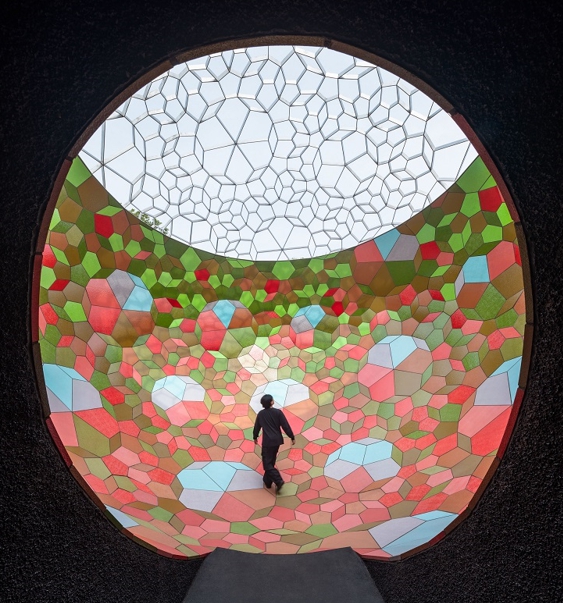 작품은 직경 8m의 공모양 구조물로 입구는 어두운 동굴처럼 만들었다. 어두운 통로를 통과하면 작품의 내부와 맞닥뜨린다. 내부에는 세계 3대 용암석 타일 산지 중 이탈리아산 용암석 타일로 붉은색과 녹색이 정교하게 구성되어 찬란한 햇빛을 반사하며 입체감을 연출, 새로운 시각적 효과를 만들어낸다.