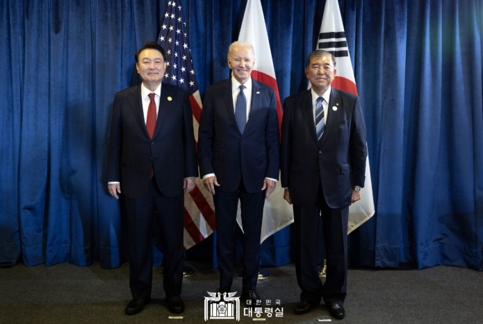| 11월 15일 윤석열 대통령은 조 바이든 미국 대통령, 이시바 시게루 일본 총리와 한미일 정상회의를 가졌다. |