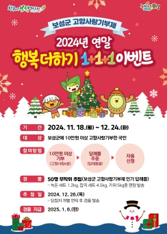| 보성군, 고향사랑기부제 연말 행복더하기(1+1+1) 이벤트_ 보성군, 고향사랑기부제 연말 행복더하기(1+1+1) 이벤트 포스터 |