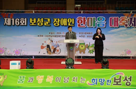 | 보성군, ‘제16회 보성군 장애인 한마음 대축제’ 성황리 개최_ ‘제16회 보성군 장애인 한마음 대축제’에서 김철우 군수가 격려사를 하고 있다. |