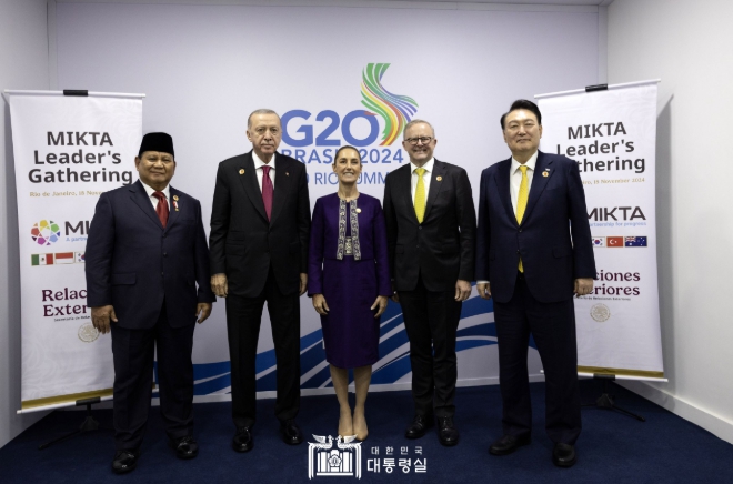 | 11월 18일 윤석열 대통령은 한국과 멕시코, 인도네시아, 튀르키예, 호주로 구성된 협의체 '믹타'(MITKA) 회원국 정상들과 회동을 가졌다. |
