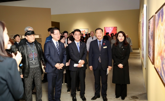 이날 개최된 개관식에는 김영록 지사와 전남도의회 이광일 부의장?한숙경 의원, 오지오 화백 유족 등 200여 명이 참석한 가운데 개막선언과 기념사, 축사에 이어 유족대표 인사말, 기념촬영, 전시 관람순으로 진행됐다.