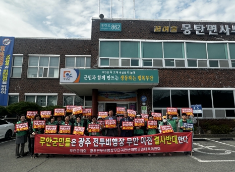 임순희 부녀회장은 “강기정 광주시장과 일부 정치인들의 야욕을 위한 쇼는 당장 중단되어야 한다”며 “전투비행장 무안 이전을 반대하는 무안군민의 뜻을 무시하면서 밀어붙이기식으로 추진하는 광주시의 행정은 상생이 아닌 살생으로 후손에게 물려줄 소중한 재산을 반드시 지키겠다”고 다짐했다.