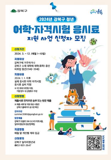 구비서류, 신청절차, 지원대상 시험 등 보다 자세한 사항은 강북구 홈페이지에서 확인할 수 있다.