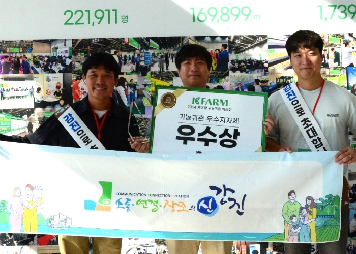 | 강진군이 2024 케이팜 귀농귀촌 박람회에서. 우수상을 받았다. |