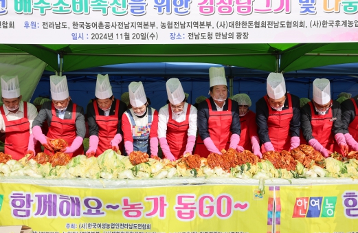 이번 행사는 우리 지역에서 자란 배추로 김장김치를 담가 도내 어려운 이웃들에게 전달하기 위해 마련된 자리로 전남도의원들과 한국여성농업인 전라남도연합회 회원 30여 명이 참여해 김치 담그기와 전달식을 진행하며 따뜻한 나눔의 시간을 가졌다.