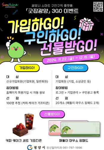 | ‘가입하GO! 구인하GO! 선물받GO!’ 굿잡광양, 3GO! 이벤트 참여하세요 |