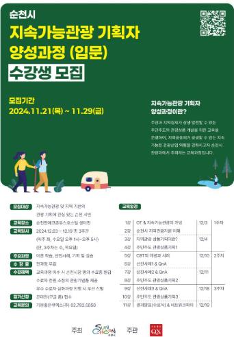 | 순천시 지속가능관광 기획자 양성과정 수강생 모집 |