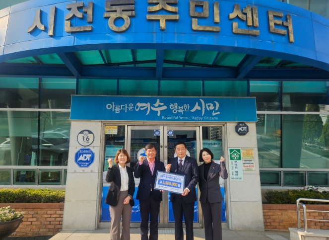 | 여수시 웅천동 소재의 새여수새마을금고가 지난 21일 어려운 이웃을 위해 써달라며 350만 원을 시전동 주민센터에 기부했다 |