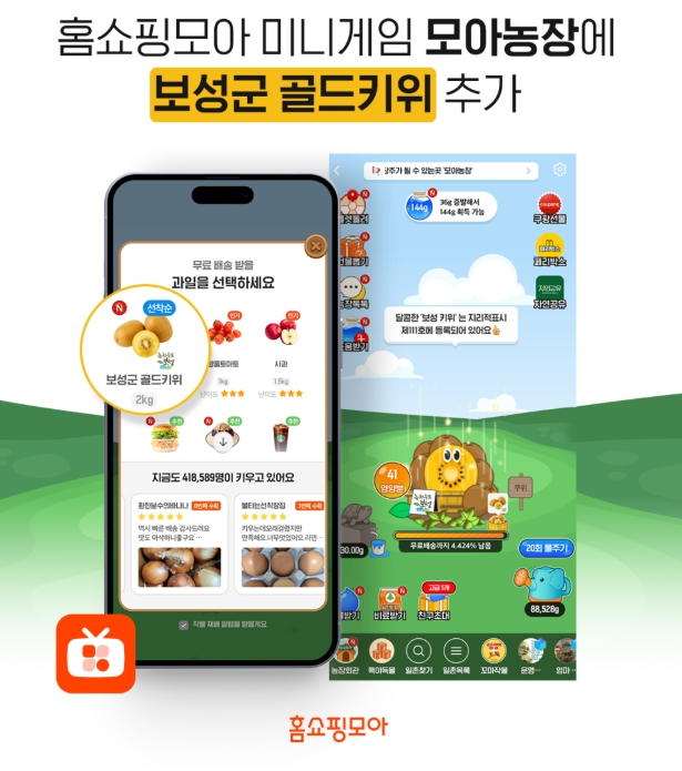 ‘홈쇼핑모아’애플리케이션을 통해 누구나 무료로 참여할 수 있으며, 골드키위를 선택해 재배에 성공하면 보성 골드키위 2kg을 집으로 무료 배송받을 수 있다. 신규 이용자는 골드키위를 선택해 키울 수 있고, 기존 이용자는 골드키위를 ‘꼬마 작물’로 추가해 기존 작물과 함께 재배할 수 있다.