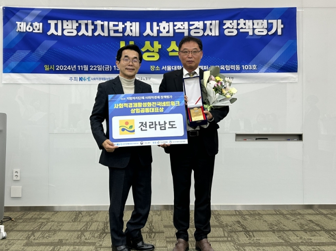 전남도는 지난해에 이어 올해 2년 연속으로 이번 평가에 입상해 우수한 사회적경제정책을 추진한 지방자치단체로 자리매김했다.