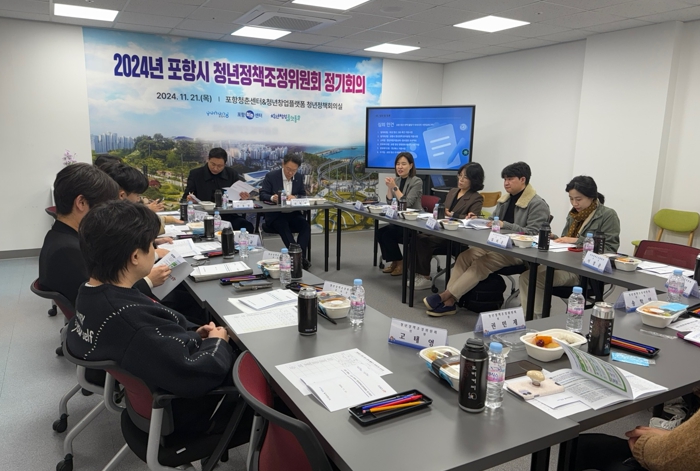 | 지난 21일 포항청춘센터&청년창업플랫폼 청년정책 회의실에서 ‘2024 포항시 청년정책조정위원회 정기회의’를 개최했다. |
