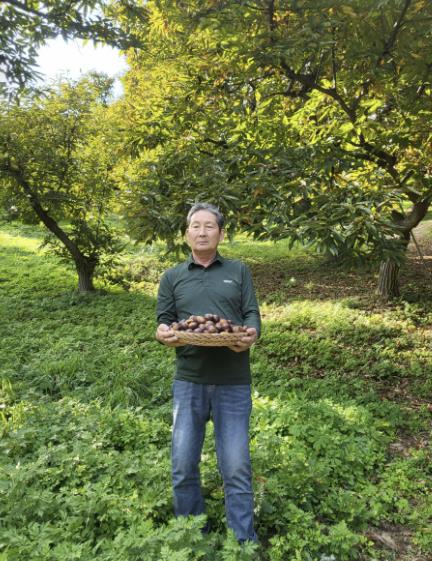 권혁용씨는 중앙탑면 루암리 일대 3ha 부지에서 단택, 이평, 석추 등 다양한 품종의 밤을 재배하며 지난 28년간 친환경 농법을 실천해 왔다.